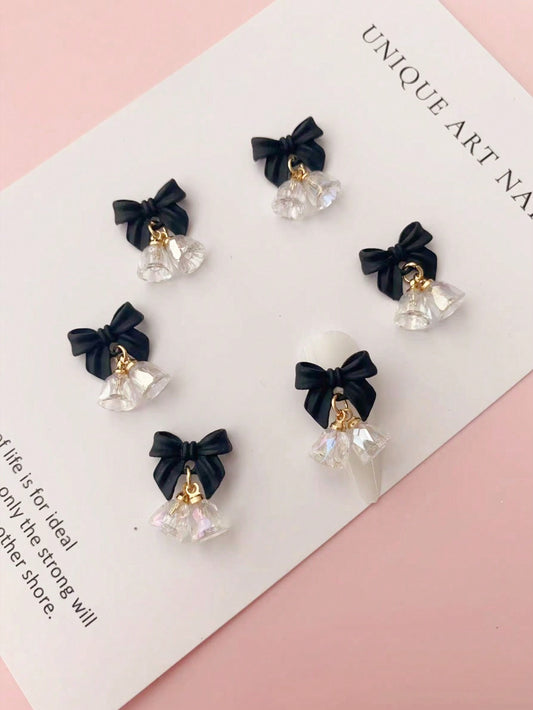 1 bag 6 Bow Black Bells Christmas nail decorations Nail Art Charms Manicure