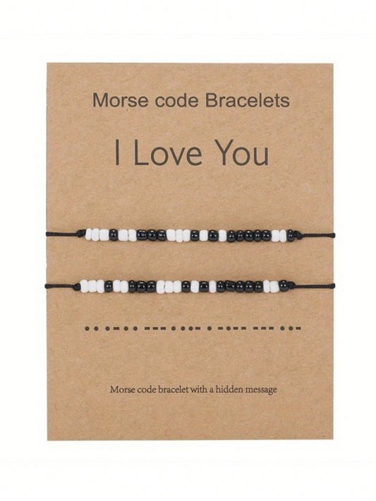 'I Love You ' Morse Code Black And White Beads Woven Couple Bracelets
